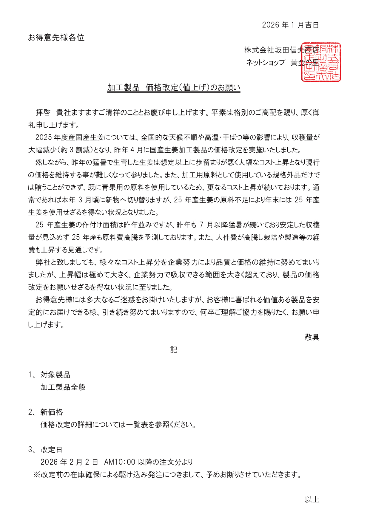 【重要】2026年2月価格改定のお知らせ ≪詳しくはこちら≫ TOP お知らせ 2026年2月価格改定のお知らせ ※ご一読ください お知らせ 2026年2月価格改定のお知らせ ※ご一読ください 2026.01.14 13:16 お知らせ